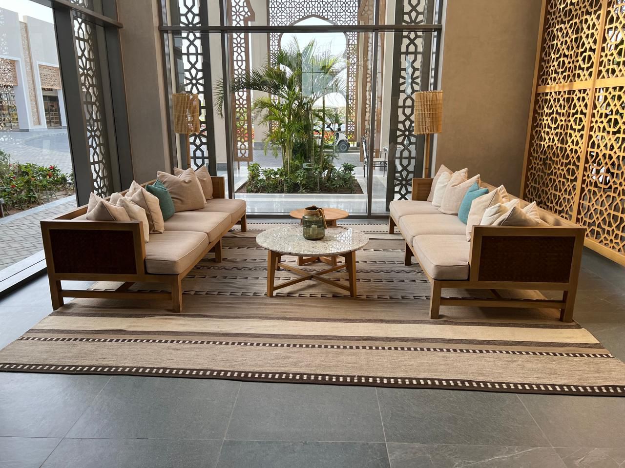 نجحنا في تقديم قطع أثاث تجمع بين رقي التصميم وقوة التحمل، معتمدين على أخشاب عالية الجودة وتفاصيل تنجيد متقنة تتناغم مع الهوية البصرية الفريدة للفندوق. هذا التعاون المتكرر هو أكبر دليل على التزامنا الثابت بالجودة والمواعيد في كبرى المشاريع الفندقية.